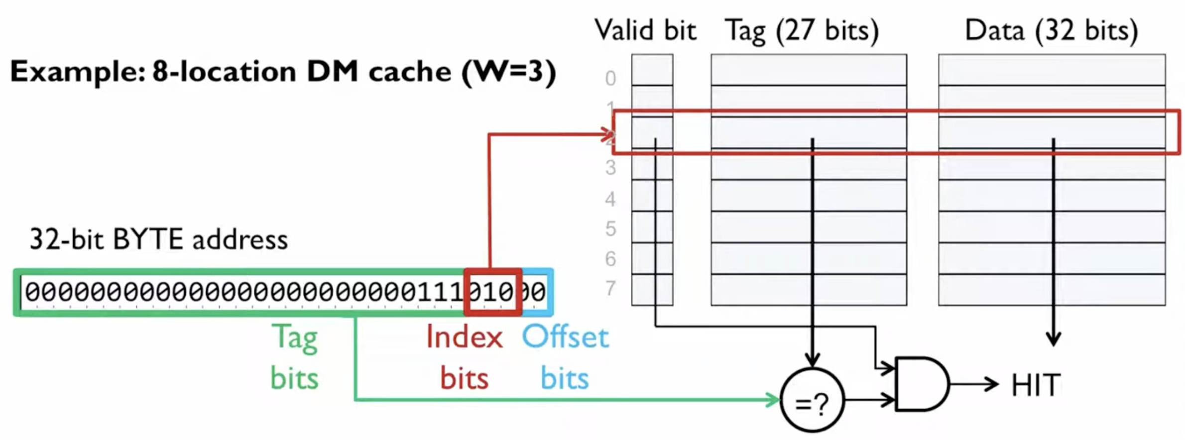 - Index: log₂(8) = 3 bits — selects which cache line