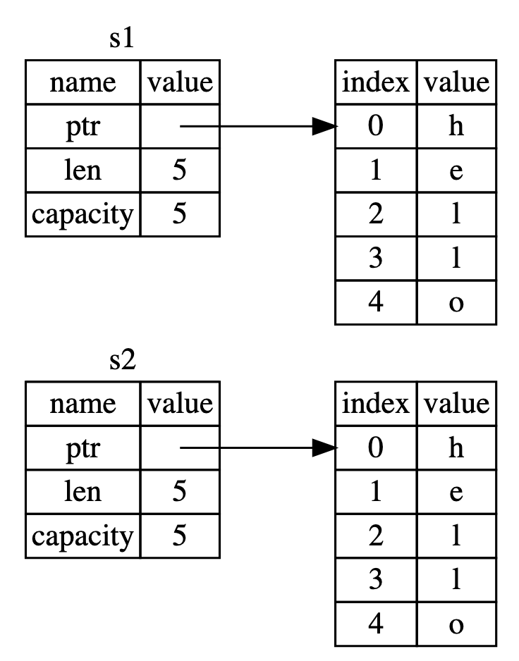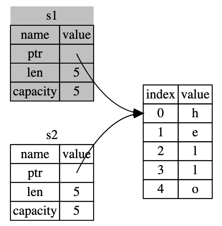 Instead, what we hope to achieve is a transferral of ownership, where s2 points to the original dynamically allocated string on the heap, and s1 loses its pointer to it.